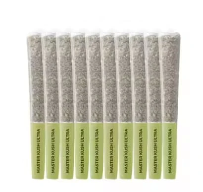 Known among cannabis enthusiasts for its storied lineage, Master Kush Ultra is an indica-dominant cultivar with a pungent, skunky, earthy aroma and a flavour profile featuring peppery gas and subtle citrus notes. Pistol and Paris products are true craft cannabis—grown with care, attention, and intention. Each batch is whole-plant hang dried, cold cured, and hand-trimmed to preserve quality at every stage. This pack includes ten half gram pre-rolls, each filled with expertly milled whole flower and hand-finished with a Dutch crown. The result is a smooth, consistent burn that reflects the brand’s commitment to craftsmanship.